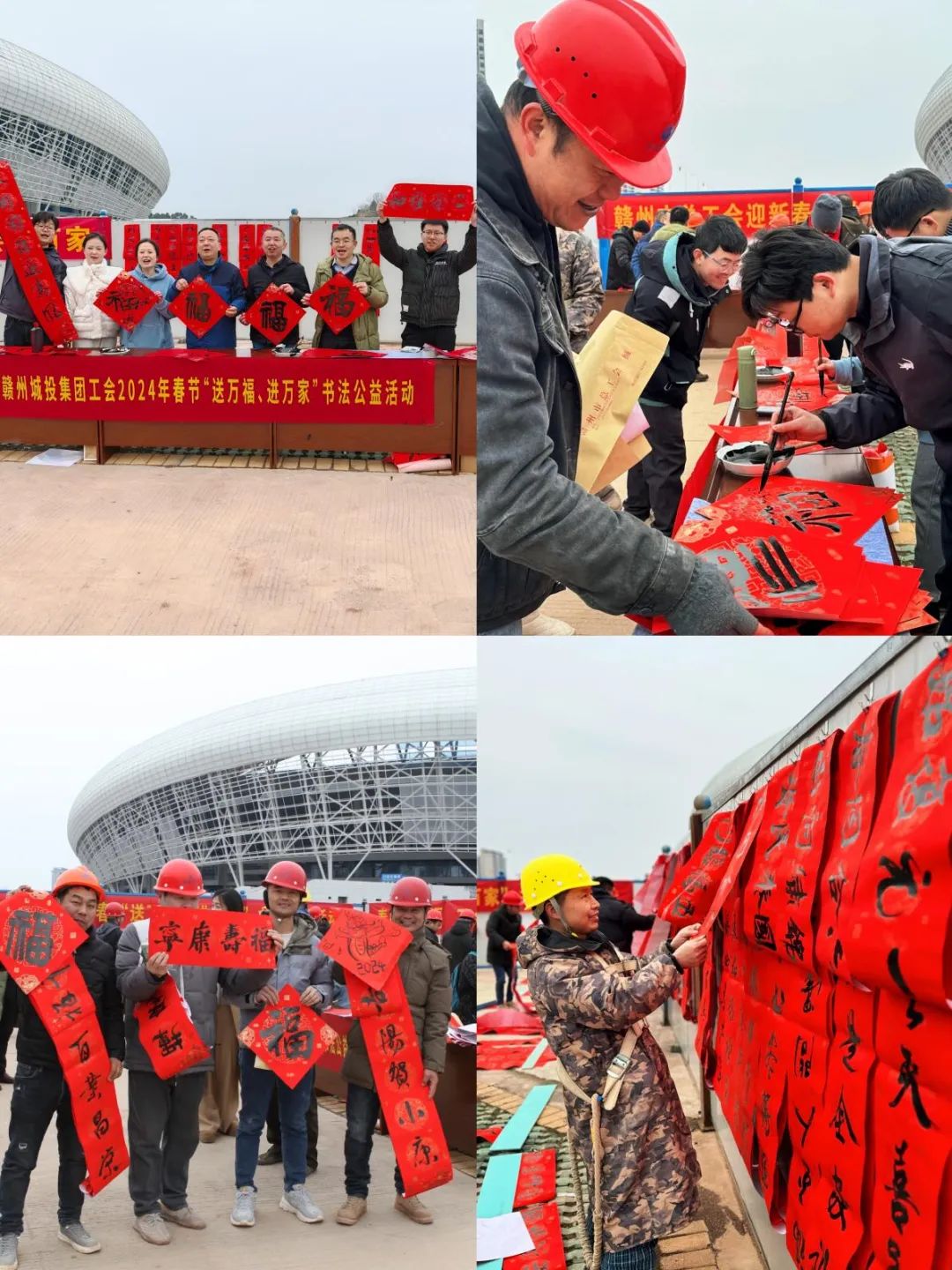 1月25日,贛州市總工會、贛州城投集團(tuán)工會在贛州市全民健身中心一期項(xiàng)目工地開展迎新春“送萬福、進(jìn)萬家”書法公益活動,為在寒冬里堅守崗位的一線工人書春送福,送去工會“娘家人”的關(guān)懷溫暖,為2024年春節(jié)營造歡樂吉祥的節(jié)日氛圍。