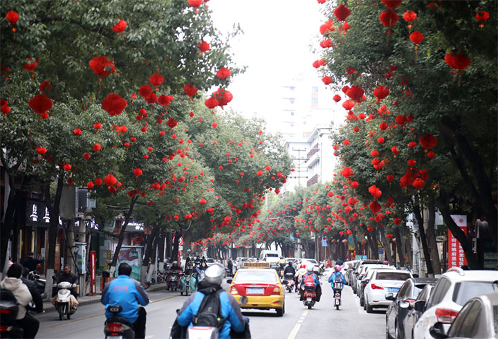 今年除了火紅的燈籠外,此次春節(jié)氛圍營造設(shè)計(jì)比去年增加了福字文化元素,順應(yīng)了習(xí)近平總書記的新春祝福語中的“和順致祥 幸福美滿”祝福。同時,依舊延續(xù)了國慶氛圍營造的“晝夜結(jié)合”的特點(diǎn),安裝了LED燈籠,讓夜晚的城市變得更加璀璨迷人。