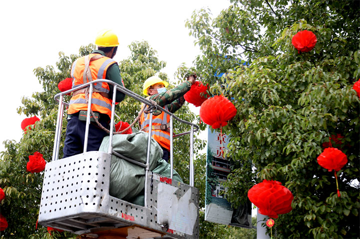 自1月18日開始,生態(tài)投資公司每日組織4輛登高車及70多位作業(yè)人員有條不紊的開展施工,預(yù)計(jì)2月7日竣工。本次春節(jié)氛圍營造預(yù)計(jì)將在中心城區(qū)安裝懸掛LED中國結(jié)燈箱300余組、LED燈籠350余個、各規(guī)格塑紙燈籠6.8萬余個、其他植絨布及綢緞燈籠近5000余個、雕塑小品4處、彩旗300余面,讓整個中心城區(qū)裝飾一新,紅紅火火迎接新年。供稿:陳 蓮 丁愛玲編輯:劉家燦 李德文