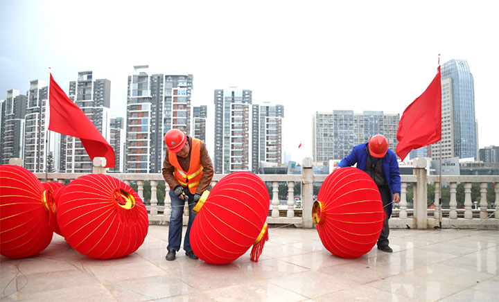 春節(jié)臨近,國內(nèi)疫情仍面臨著“外防輸入、內(nèi)防反彈”的壓力,為更好地給市民朋友營造歡樂喜慶的春節(jié)氛圍,贛州城投集團(tuán)下屬子公司生態(tài)投資公司正在中心城區(qū)的六個主要節(jié)點(diǎn)(贛州火車站、高鐵西站、黃金機(jī)場等)、十條主要道路(長征大道、文清路、厚德路、健康路、興國路等)、六條主要橋梁(飛龍大橋、西河大橋、楊梅渡大橋、章江大橋等)、八個主要公園(黃金廣場、贛州公園、中央生態(tài)公園、八境公園等)緊鑼密鼓地進(jìn)行春節(jié)氛圍營造工作,打造“留贛過年”的溫暖年味。