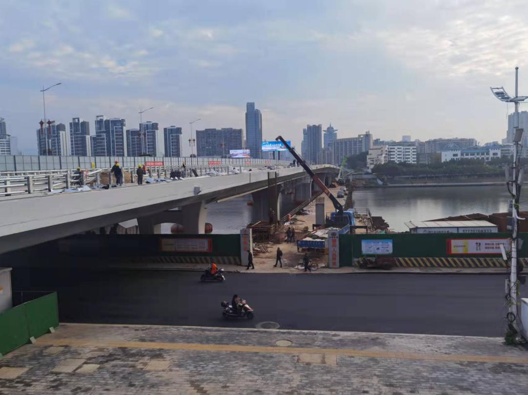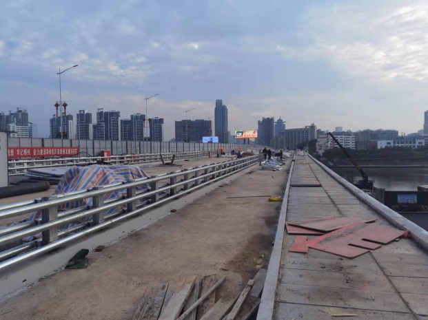12月22日,由贛州城投工程管理有限公司組織實(shí)施的南河大橋拓寬改造二期項(xiàng)目,橋面附屬結(jié)構(gòu)施工正緊張有序地進(jìn)行。其中,機(jī)非分隔護(hù)欄、人行道鋪裝已完成約100米,強(qiáng)電及水務(wù)管線已鋪裝約300米。