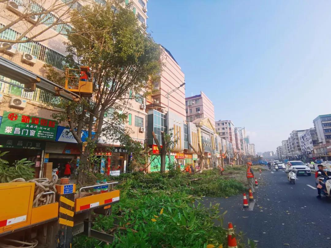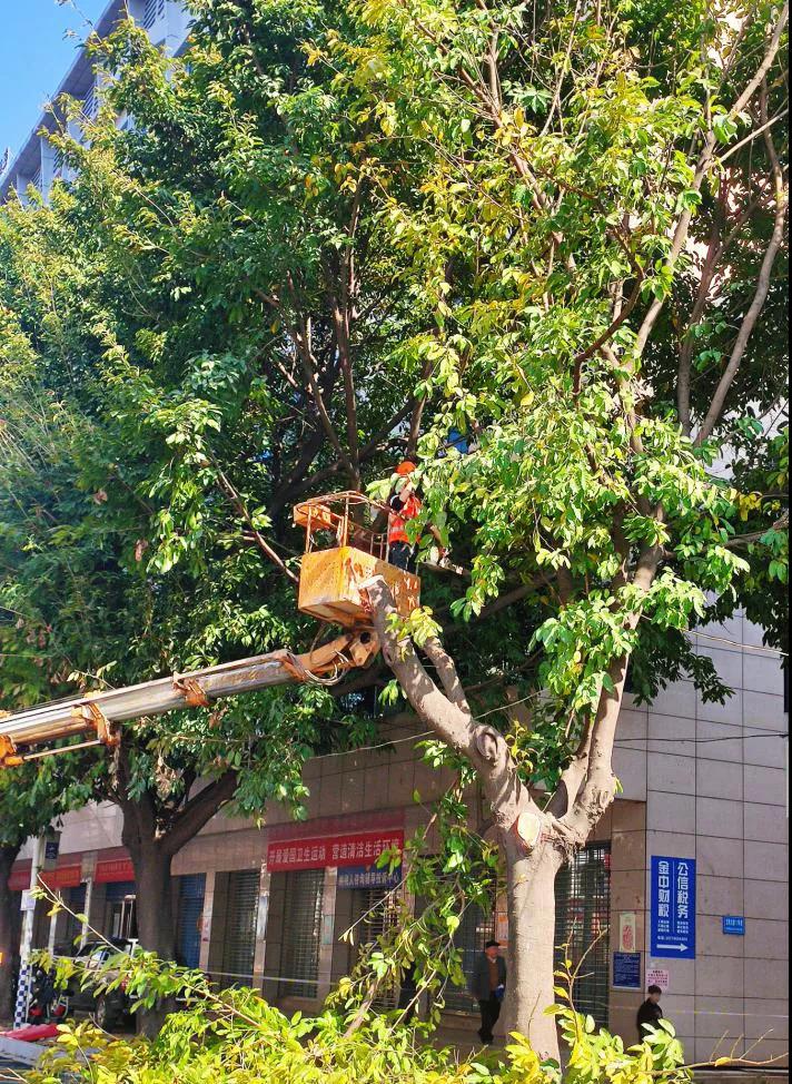 生態(tài)環(huán)境公司將對(duì)站北社區(qū)、文明大道、寧都路、楊公路等13個(gè)路段及街道約2000多株行道樹進(jìn)行了修剪。行道樹主要品種為大葉榕、小葉榕,高度均在10-40米之間,有接近100棵為40米高度,整體作業(yè)難度增加,截止目前為此,已修剪200多棵,預(yù)計(jì)整個(gè)修剪工作要持續(xù)到6月中旬。