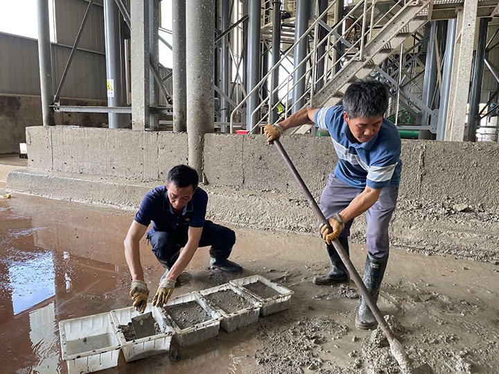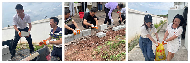 6月5日,利用周末休息時間,曹惠組織生產(chǎn)一線黨員加班加點,利用生產(chǎn)過程中產(chǎn)生的廢料混凝土,將其變廢為寶進(jìn)行“加工”,制成60余塊磚。