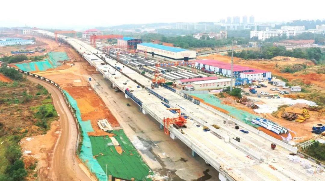 蓉江三路快速路(含地下綜合管廊)項目作為“四橫六縱”中的一條南北走向主干線,南起丁香路,北至筱壩大橋南端接地點,總投資約25.87億元,全長約5.1公里,主路為高架段城市快速路,規(guī)模為雙向6車道。項目于2020年8月1日正式開工,截至2021年11月15日,共完成總工程量的51%,其中橋梁工程完成66.2%,道路工程完成48.7%,地下綜合管廊工程完成約84.6%,預計在2022年年底完工。項目建成后,可實現(xiàn)蓉江新區(qū)、高鐵新區(qū)南北向聯(lián)系,大大提高新老城區(qū)交通服務(wù)水平,實現(xiàn)贛州交通發(fā)展水平與社會經(jīng)濟發(fā)展水平相適應。