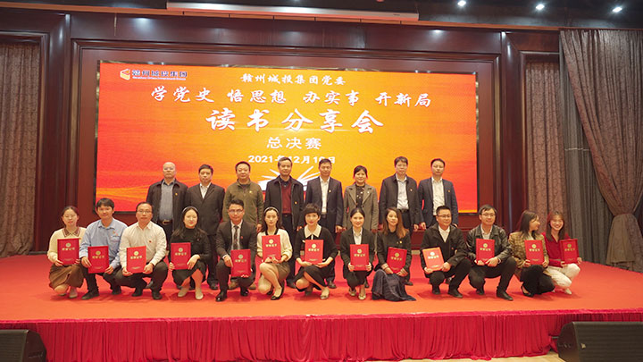 12月10日上午,贛州城投集團(tuán)黨委"學(xué)黨史 悟思想 辦實(shí)事 開(kāi)新局"讀書(shū)分享會(huì)總決賽圓滿落幕。市國(guó)資委黨委委員、副主任黃曉東和相關(guān)科室負(fù)責(zé)人、市國(guó)資系統(tǒng)其他集團(tuán)分管領(lǐng)導(dǎo)以及黨群口負(fù)責(zé)同志蒞臨指導(dǎo),集團(tuán)黨委副書(shū)記黃家偉出席活動(dòng),集團(tuán)全體黨員到現(xiàn)場(chǎng)觀看。