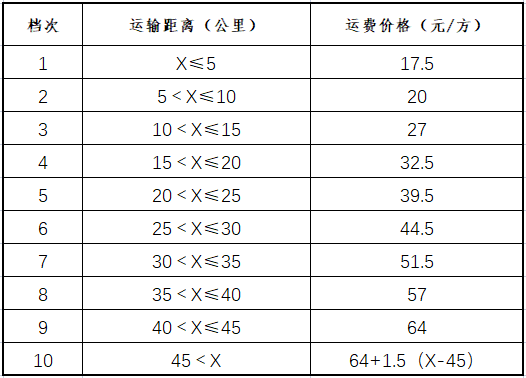 注:河砂價格不變,到砂價為河砂價格+運費價格。