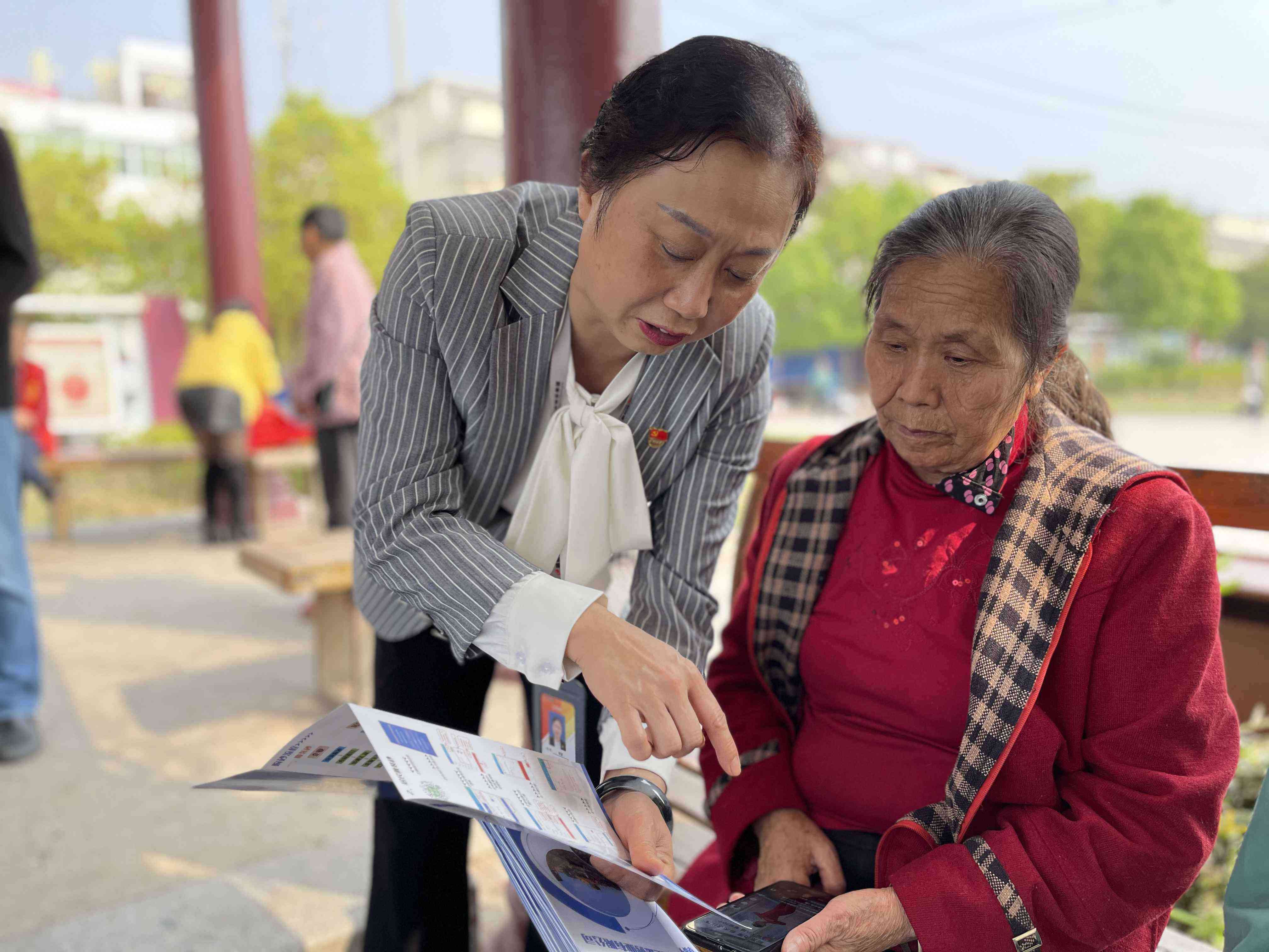 在現(xiàn)場,黨員先鋒隊隊員們向村民發(fā)放購砂宣傳冊,宣講購砂流程;設(shè)立咨詢臺,接收現(xiàn)場群眾的購砂咨詢,幫助群眾熟悉使用“購砂小程序”,現(xiàn)場解答群眾的購砂疑問。