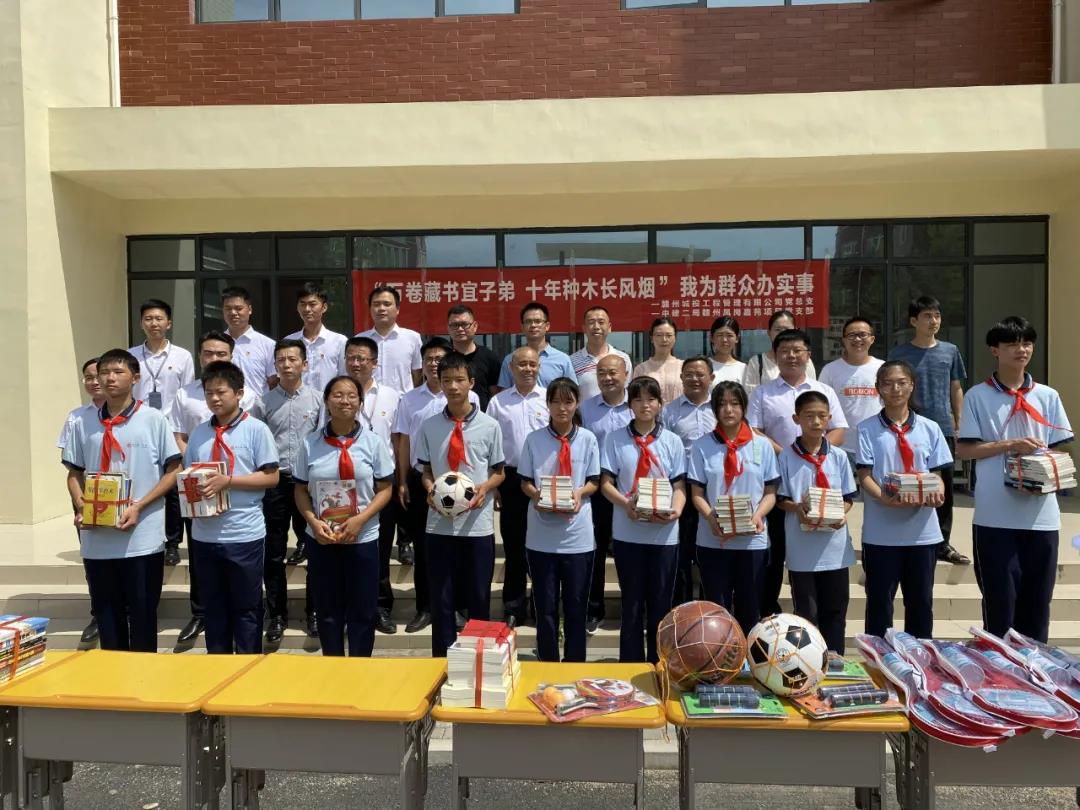 仲夏時(shí)節(jié),萬木欣然。7月2日上午,贛州城投集團(tuán)工程管理公司黨總支聯(lián)合中國建筑第二工程局江西分公司高鐵新區(qū)鳳崗嘉苑住宅小區(qū)項(xiàng)目黨支部在贛州第一中學(xué)(西城校區(qū))開展愛心捐贈(zèng)公益活動(dòng),活動(dòng)以“萬卷藏書宜子弟,十年種木長風(fēng)煙”為主題。工程管理公司黨總支、中國建筑第二工程局江西分公司鳳崗嘉苑住宅小區(qū)項(xiàng)目黨支部黨員、贛州第一中學(xué)(西城校區(qū))師生等共計(jì)40余人參加捐贈(zèng)活動(dòng)。