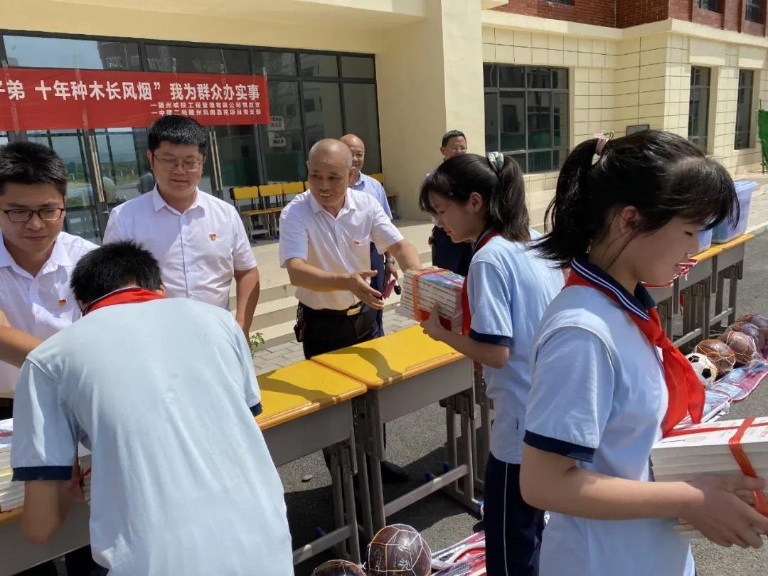 在開展“我為群眾辦實(shí)事”征集意見過程中,前不久,通過實(shí)地走訪了解到,贛州第一中學(xué)(西城校區(qū))在辦學(xué)過程中遇到學(xué)生課外讀物短缺的問題。工程管理公司黨總支立即牽頭組織了本次愛心公益活動(dòng)。在短短2天的時(shí)間內(nèi),全體黨員迅速行動(dòng)起來,通過微信支付、現(xiàn)場募捐等形式籌措了愛心資金共計(jì)6000余元,為學(xué)校準(zhǔn)備了300余冊課外讀物、共24個(gè)籃球、足球等體育用品,并為成績優(yōu)異的10名貧困學(xué)生代表捐贈(zèng)了愛心助學(xué)金。今后,高鐵新區(qū)鳳崗嘉苑住宅小區(qū)項(xiàng)目部的黨員將繼續(xù)為這些貧困學(xué)生提供學(xué)習(xí)上的幫助,一對(duì)一的護(hù)航他們在今后的學(xué)習(xí)、生活、成長。