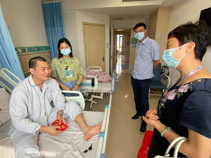 前不久,贛州城投集團(tuán)新型建材公司黨支部在摸排“我為群眾辦實(shí)事”線索過程中,得知一名職工丈夫生病住院做手術(shù),病情讓她很是牽掛。8月12日上午,新型建材公司黨支部組成慰問小組,來到贛州市人民醫(yī)院,看望該名職工及其丈夫,為他們送去了黨支部的關(guān)心和慰問。