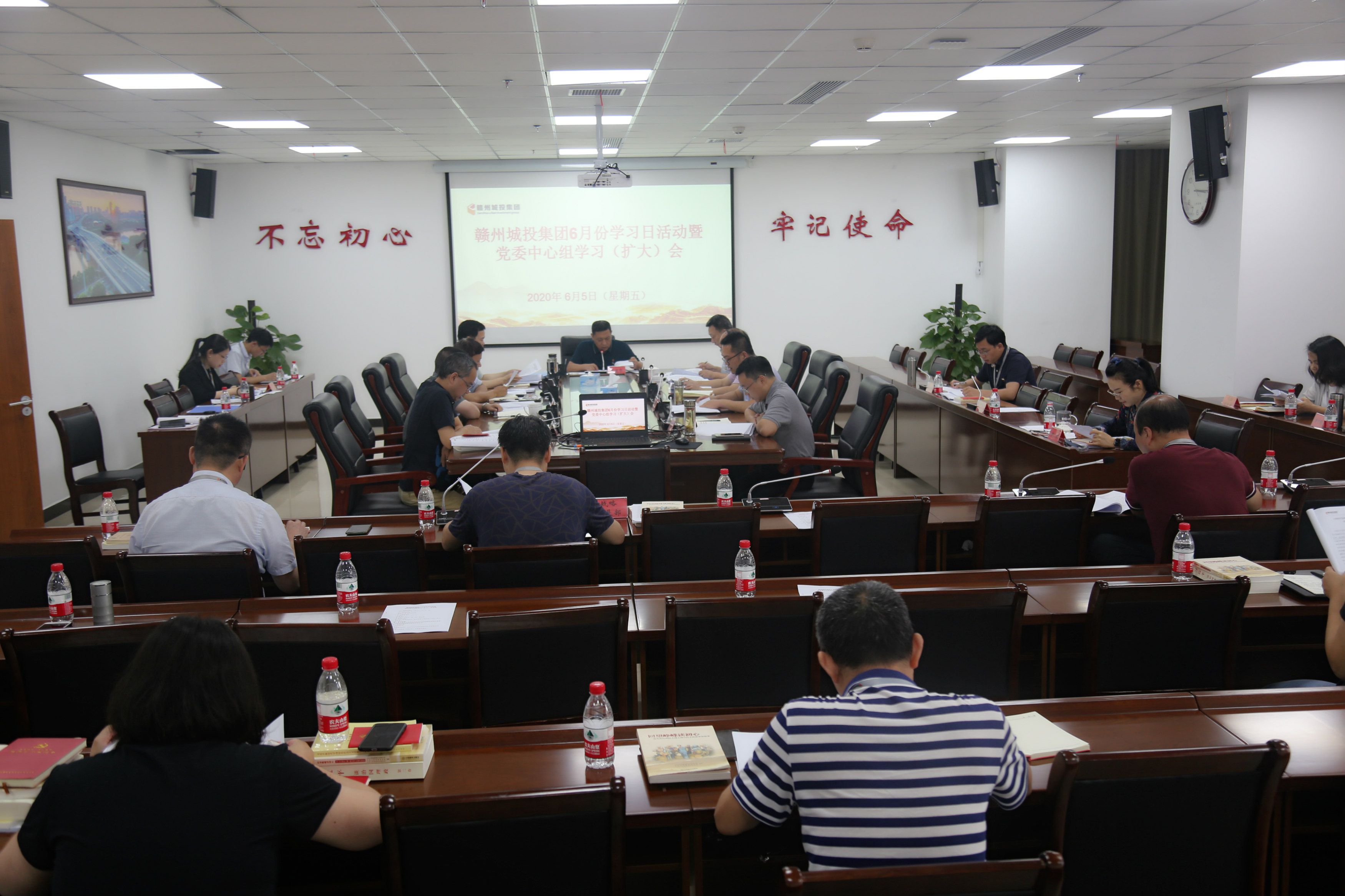 6月5日下午,贛州城投集團開展6月份學習日活動暨黨委中心組學習(擴大)會,深入學習領會習近平總書記關于全面依法治國的重要論述,把全面從嚴治黨、全面依法治國與企業(yè)治理高度融合,貫徹落實全國“兩會”精神,不斷提高依法依規(guī)治企水平,扎實推動集團高質量轉型發(fā)展。集團黨委書記、董事長朱建華主持并講話,在家高管參加。
